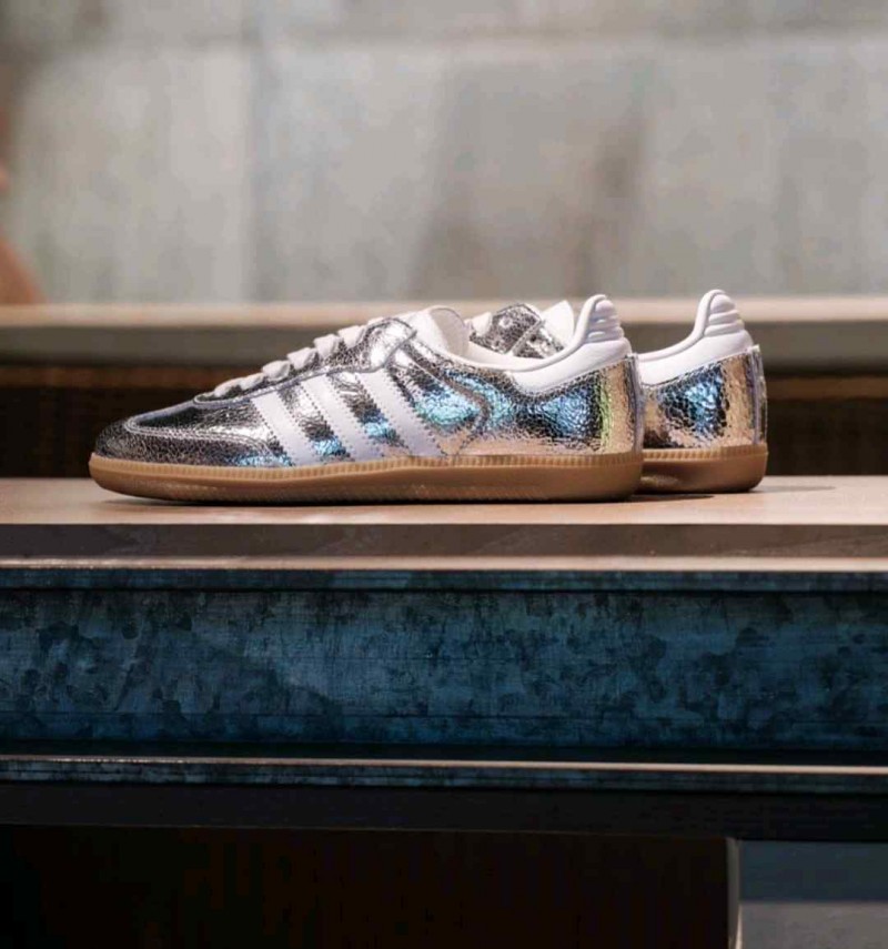 Adidass Samba OG Silver Metallic Cracked Leather