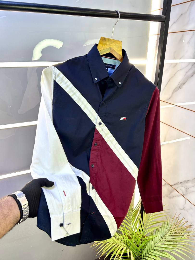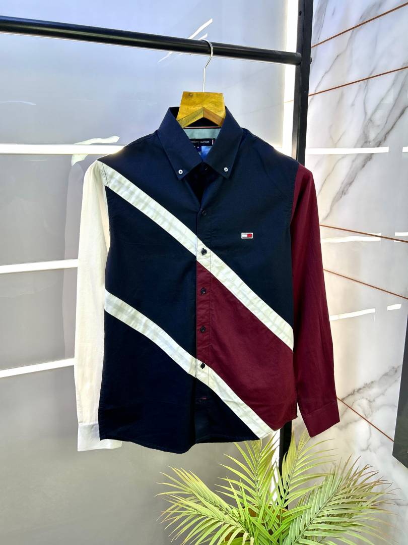 Tommy_Hilfiger Navy Oxford Lycra Premium Printed Shirts F2715-NY